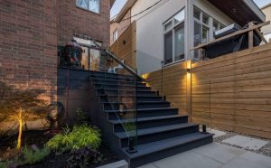 Our team worked diligently to create interlocked spaces, walkways, and staircases, meticulously incorporating greenery and shrubs to maintain the natural atmosphere the homeowner desired. We utilized our expertise in landscaping and interlocking to create walkways, seating areas, and spaces for ample greenery. To achieve this, we deconstructed the old planting areas and built new ones that beautifully complemented the new outdoor space. In addition to our extensive landscaping and interlocking work, we also constructed a stunning deck with glass railings, further enhancing the space’s aesthetic appeal. The end result was a breathtaking backyard transformation that exceeded the homeowner’s expectations and provided a perfect space for entertaining and relaxation.